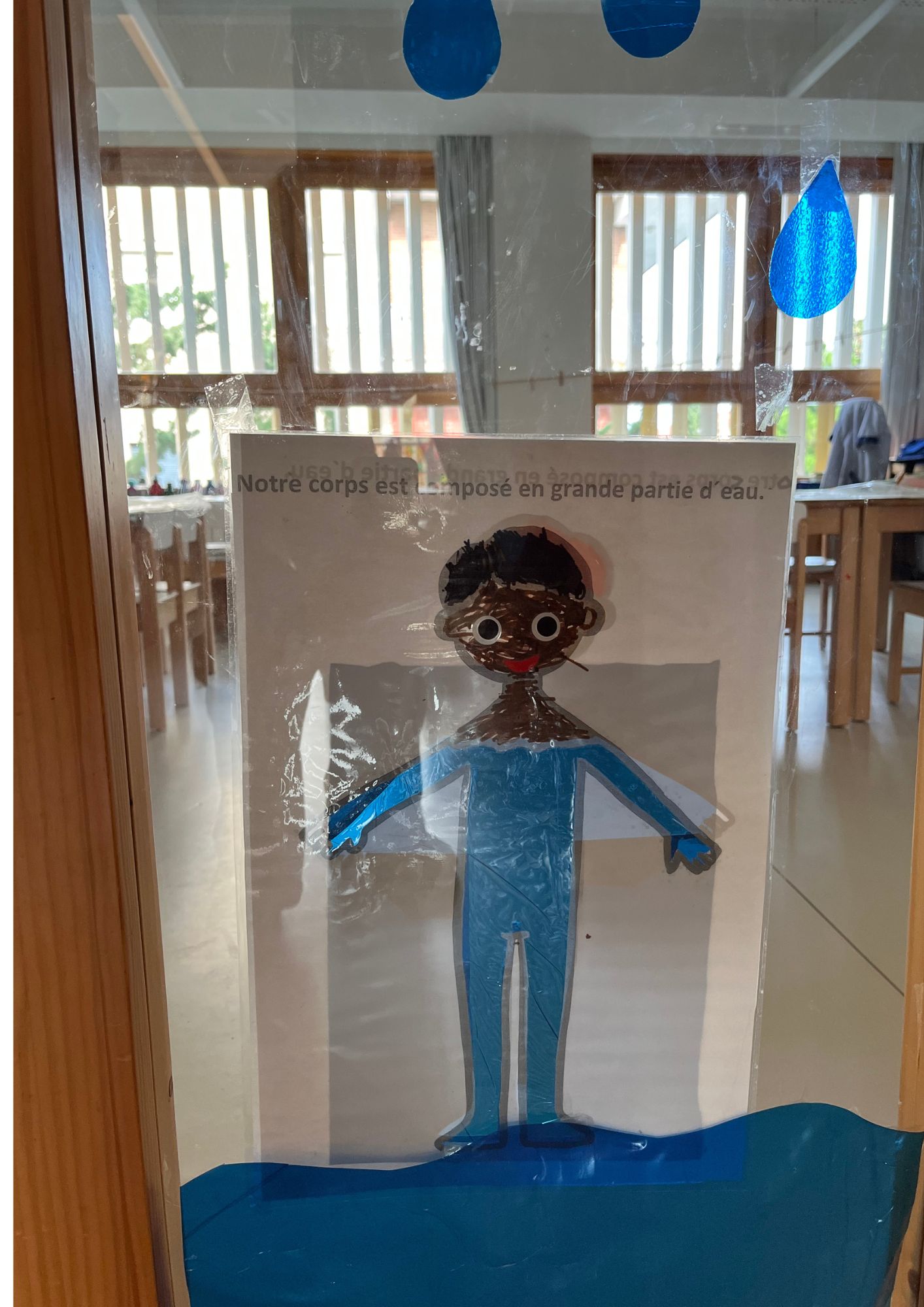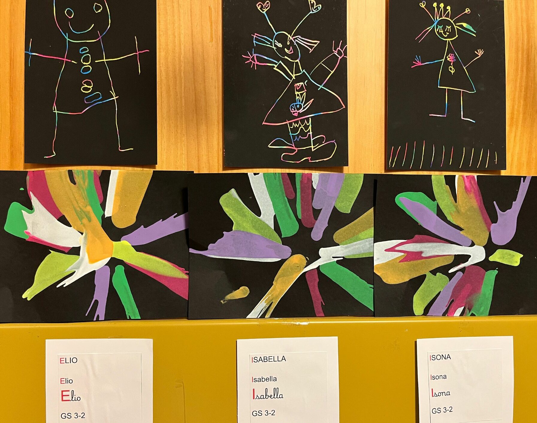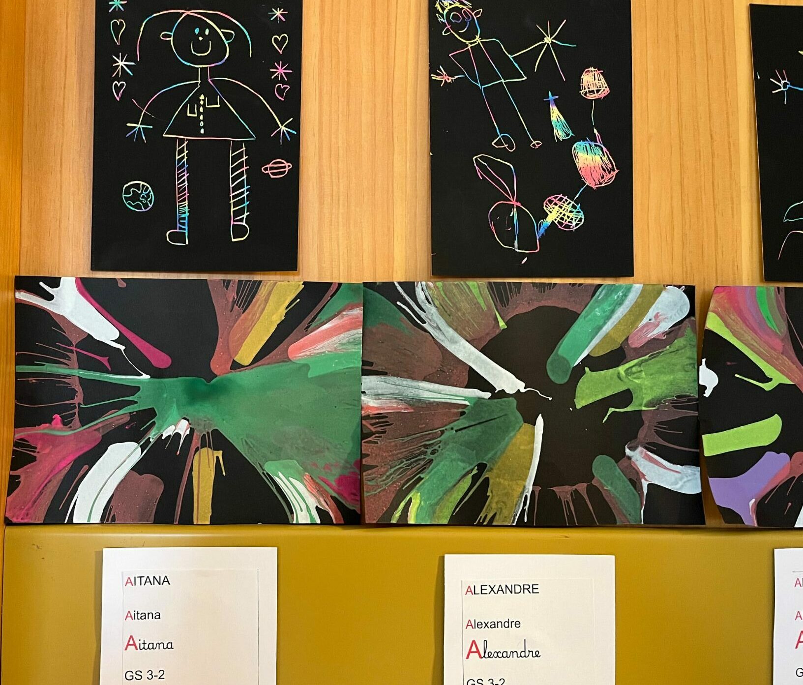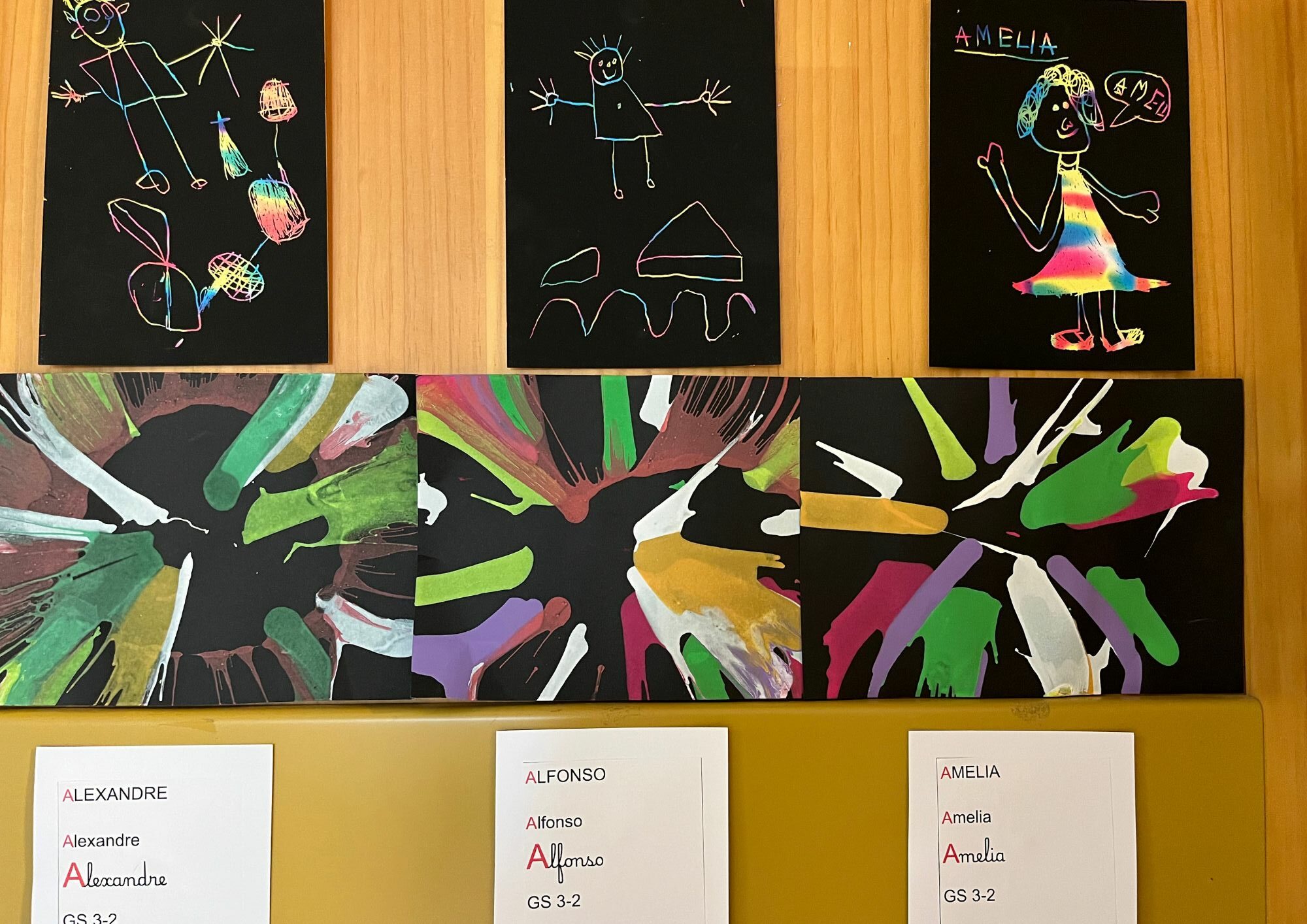 En se promenant dans les couloirs de la maternelle, on découvre différents dessins affichés aux murs.