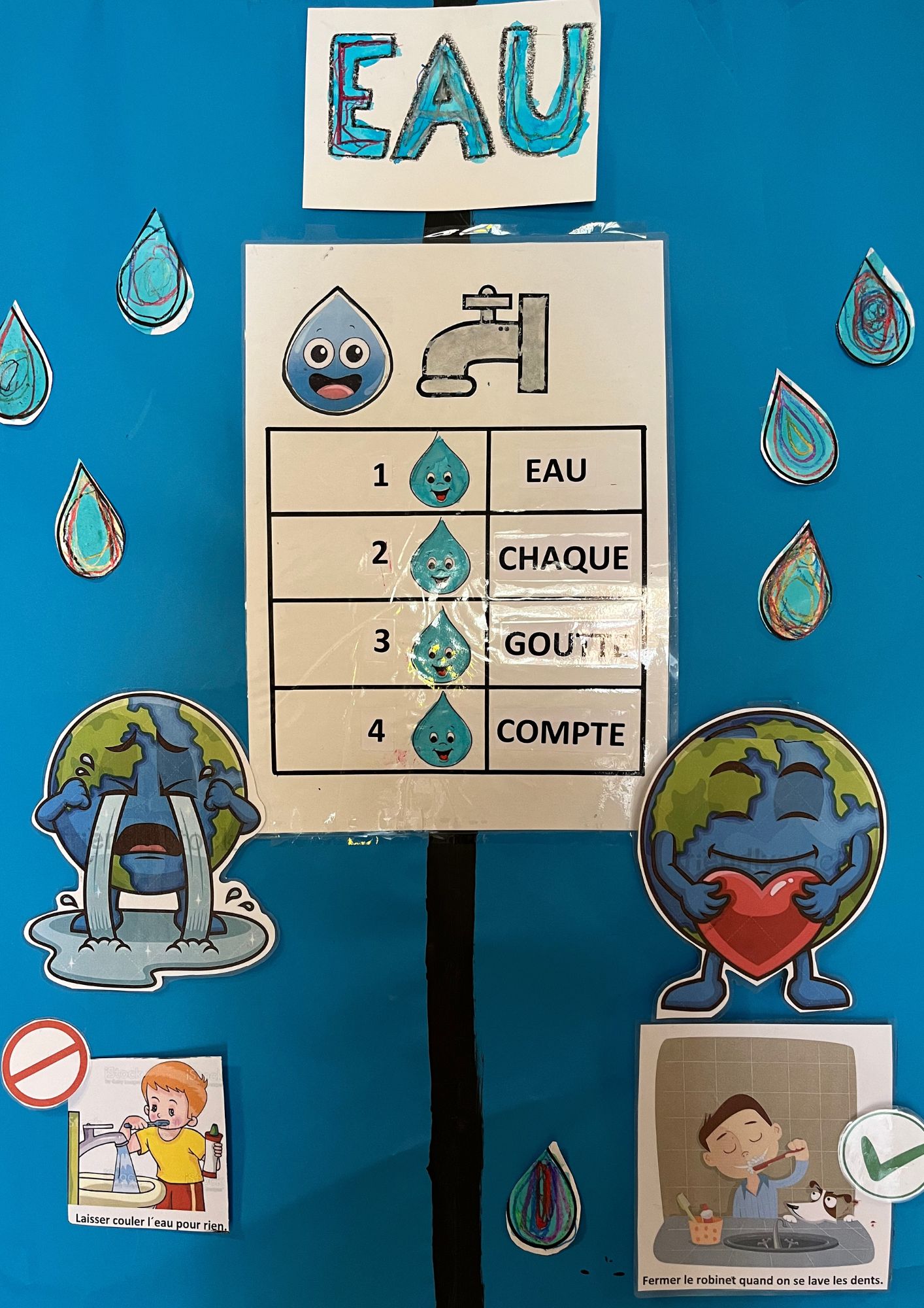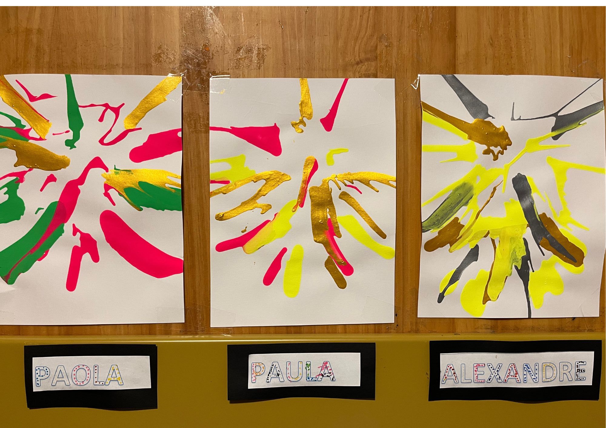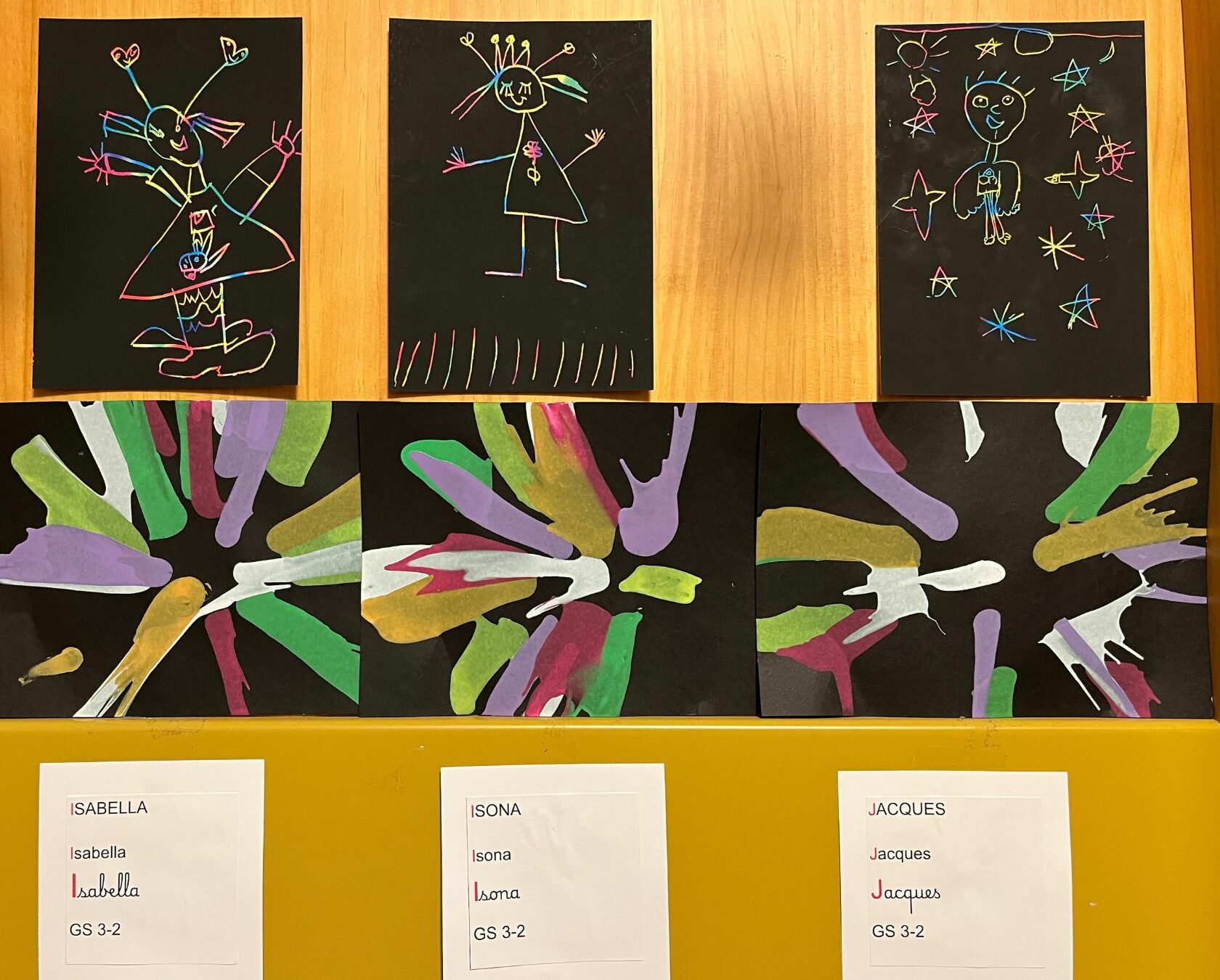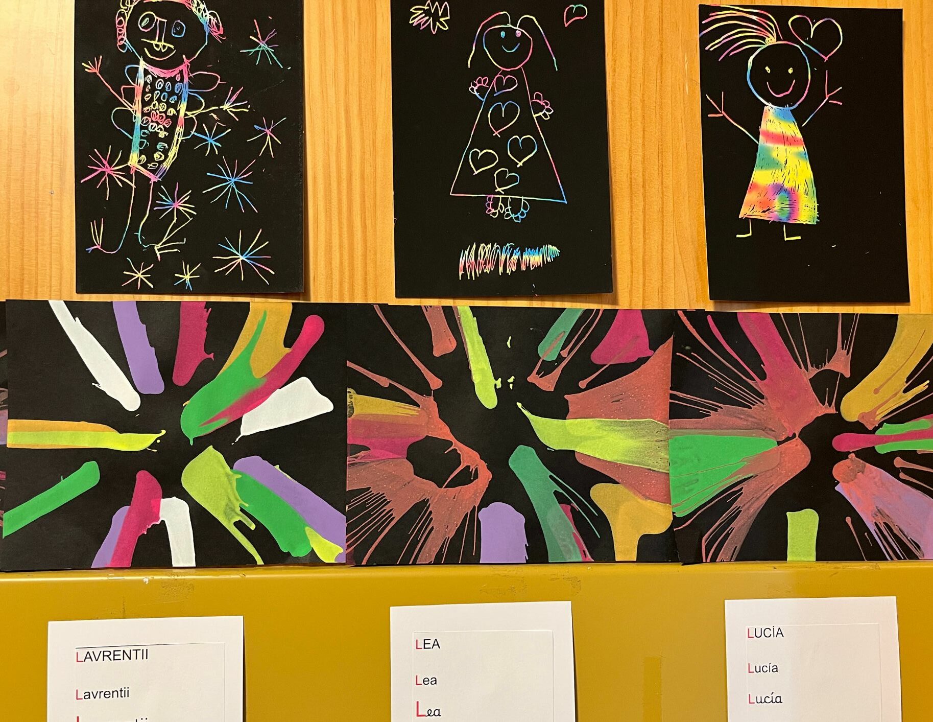 En se promenant dans les couloirs de la maternelle, on découvre différents dessins affichés aux murs.