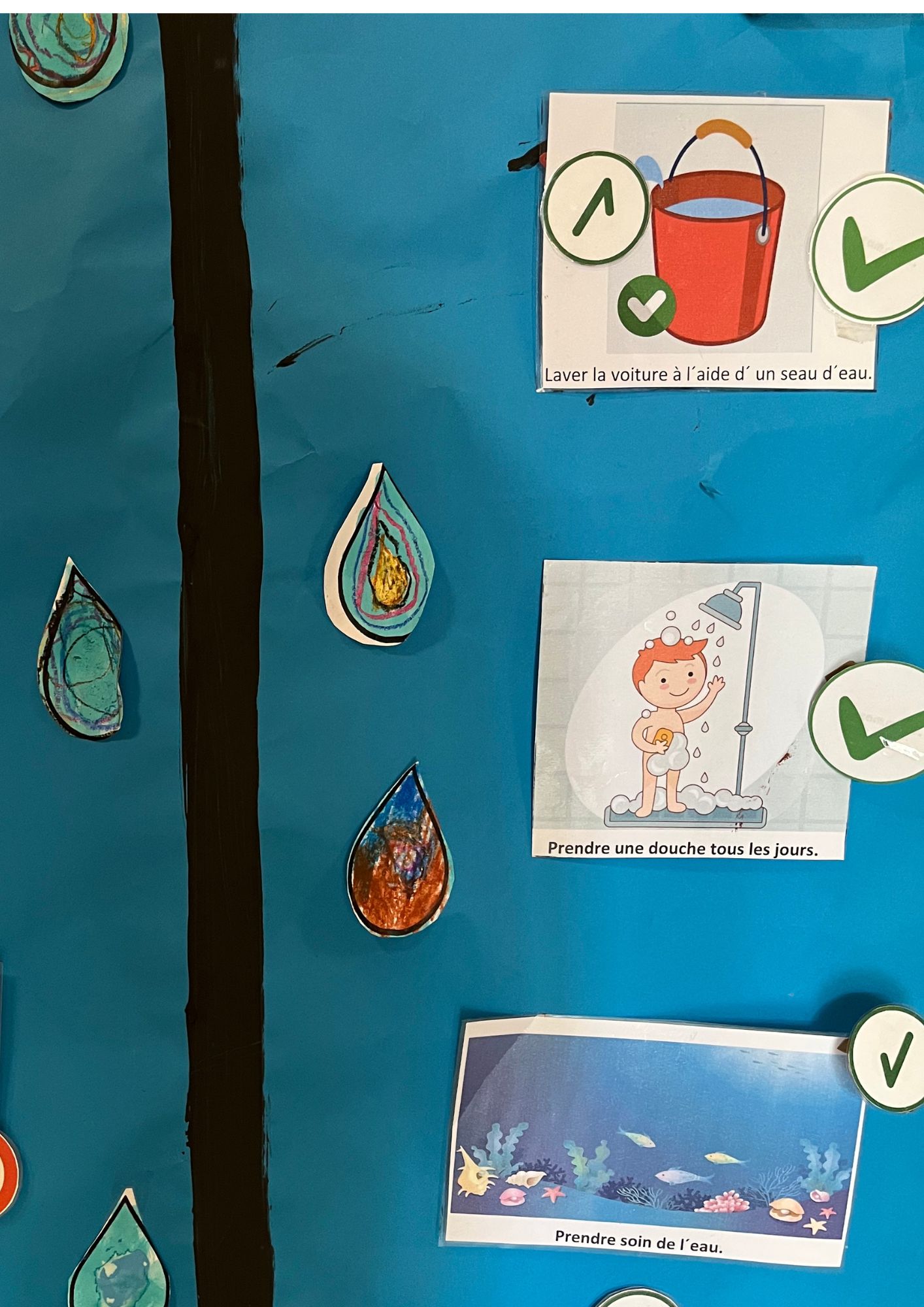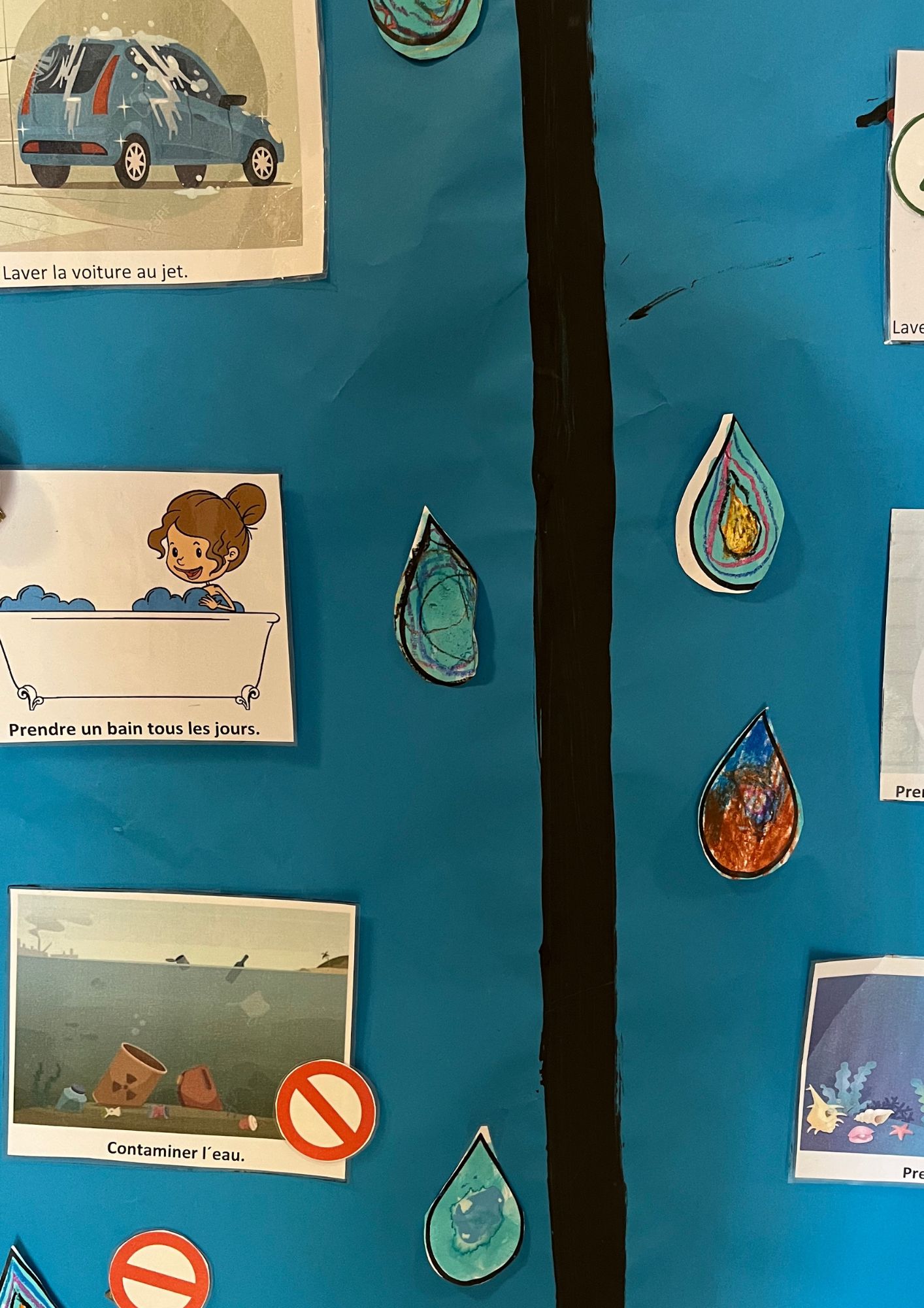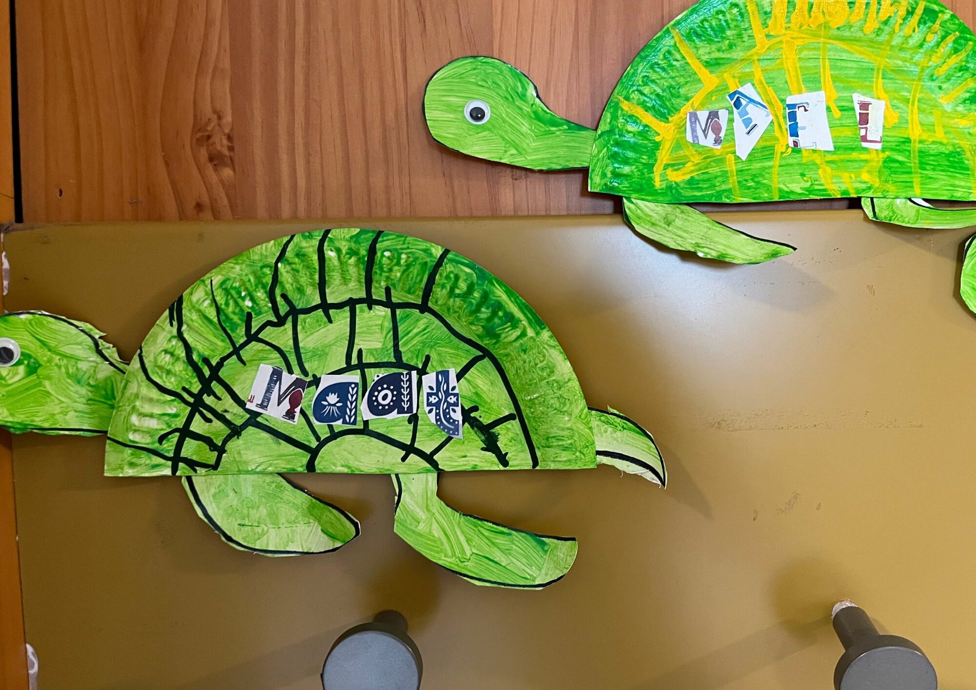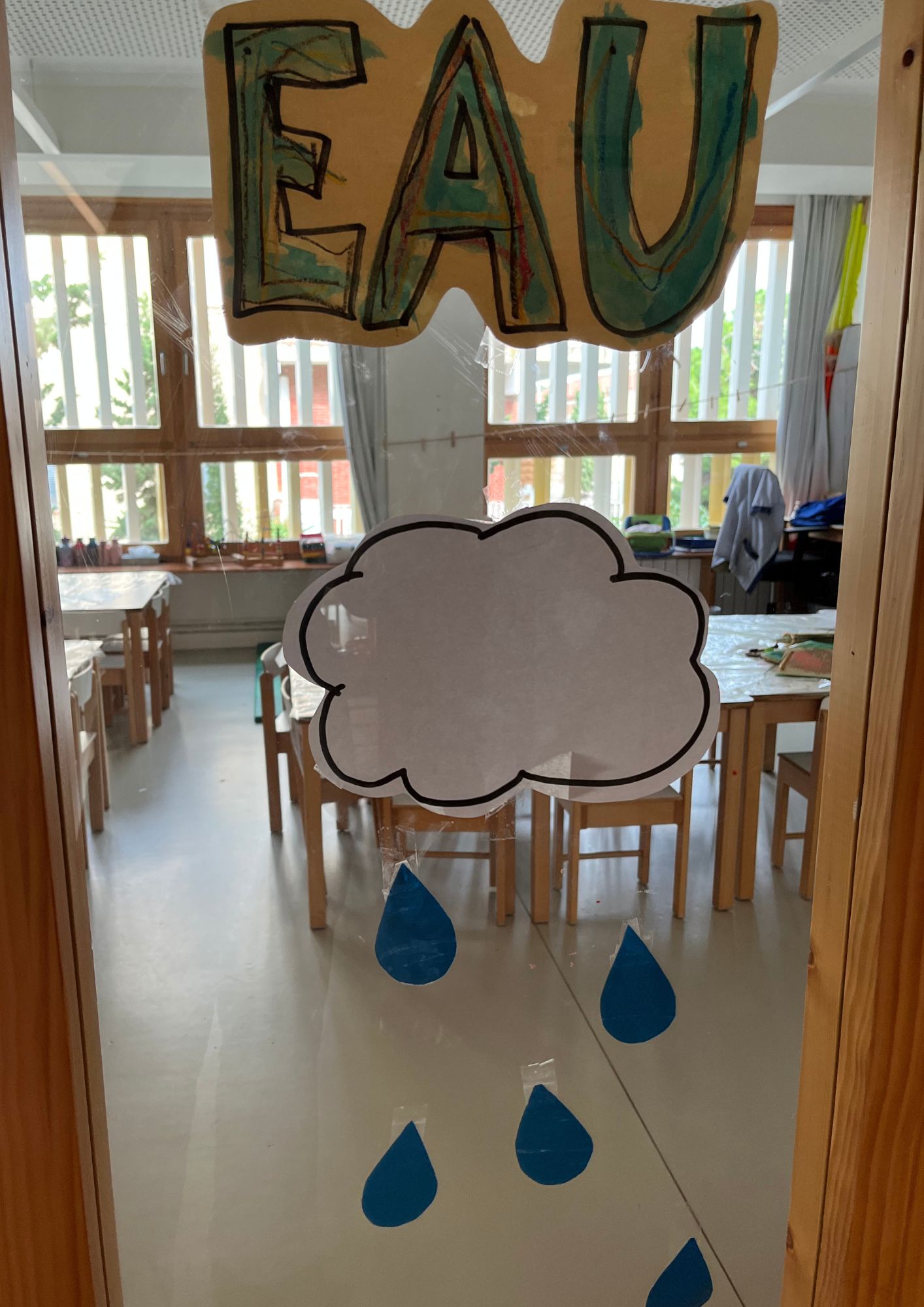 En se promenant dans les couloirs de la maternelle, on découvre différents dessins affichés aux murs.
