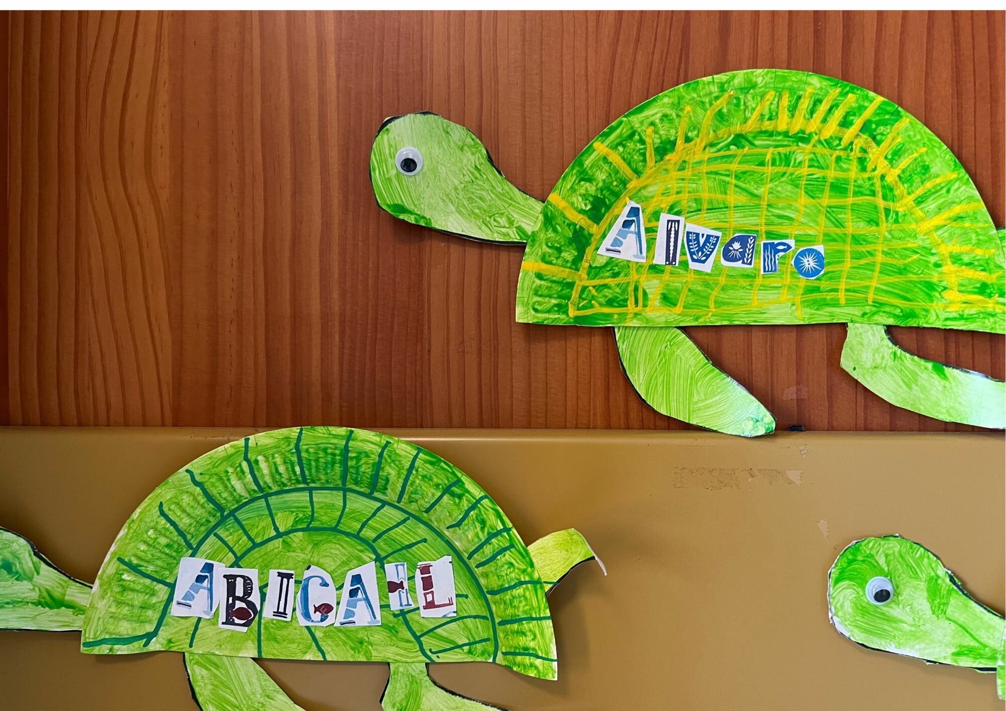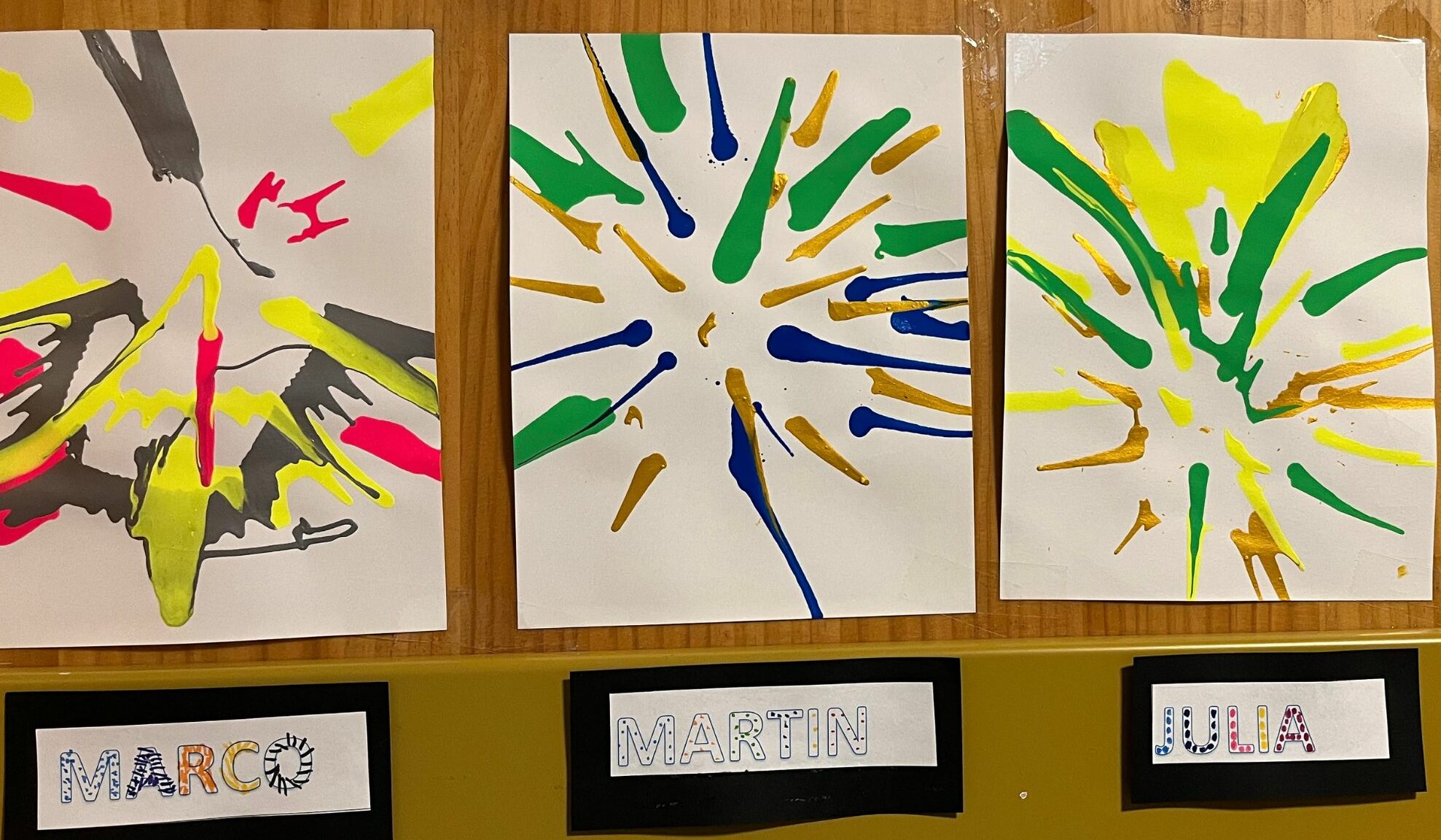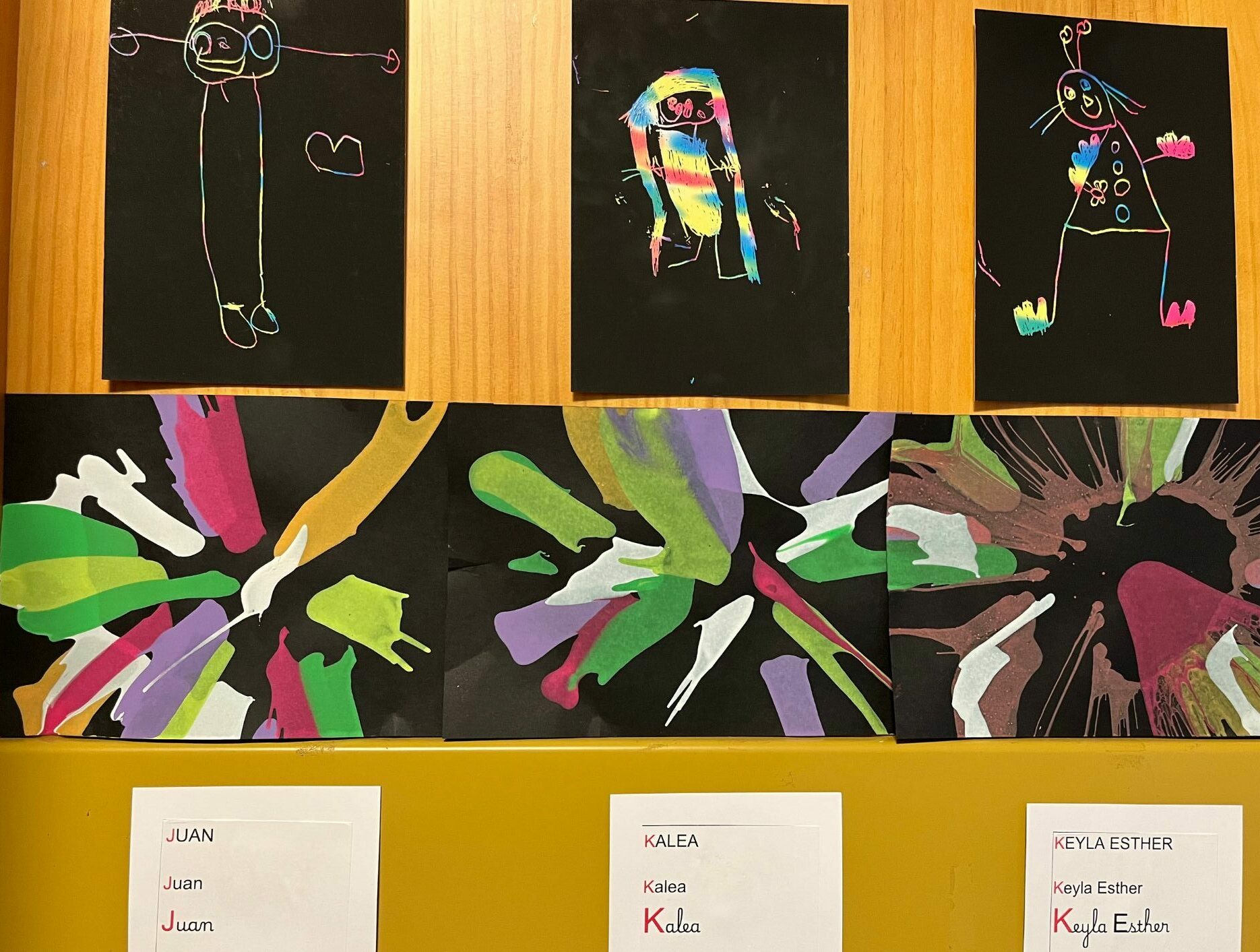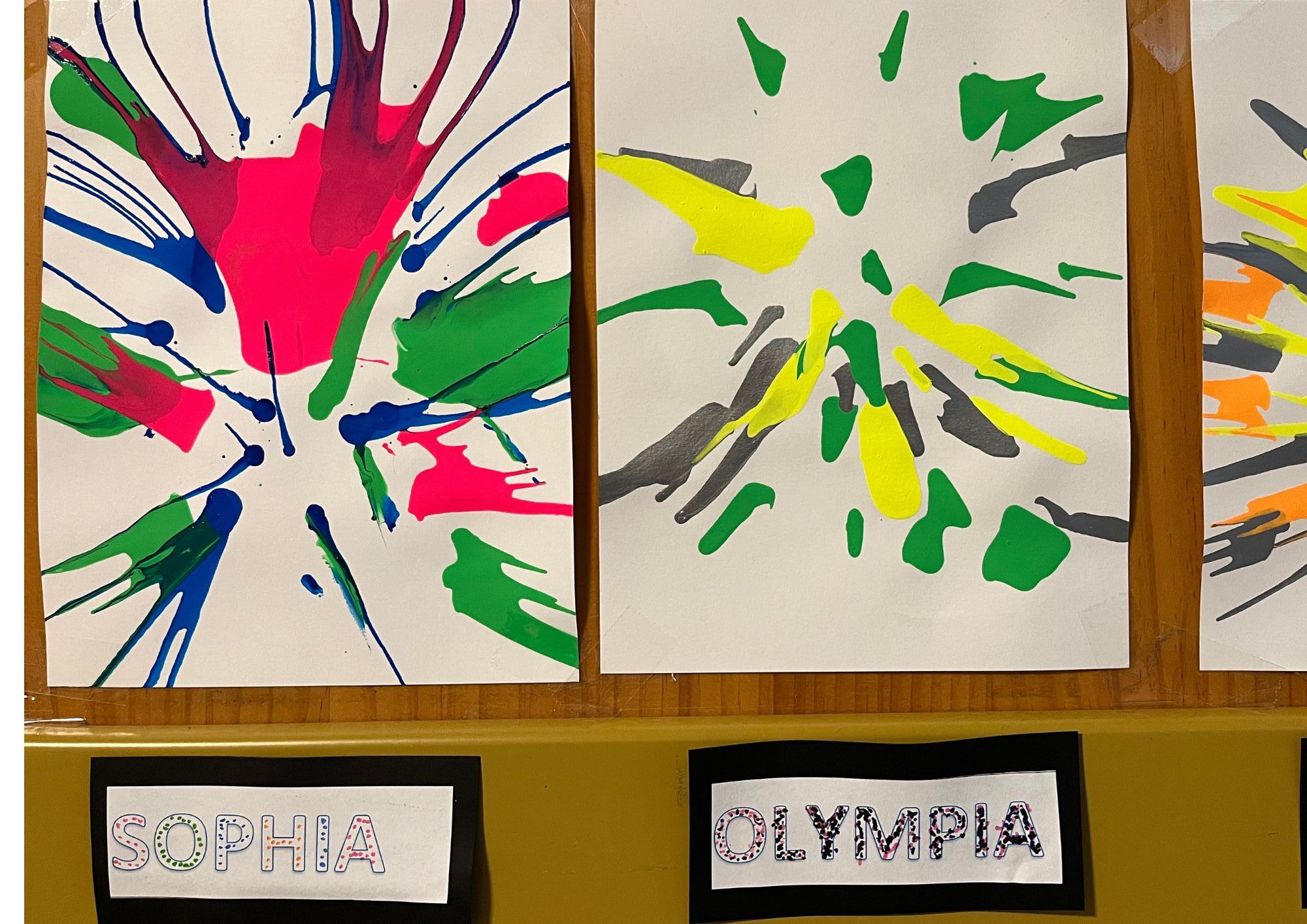 En se promenant dans les couloirs de la maternelle, on découvre différents dessins affichés aux murs.