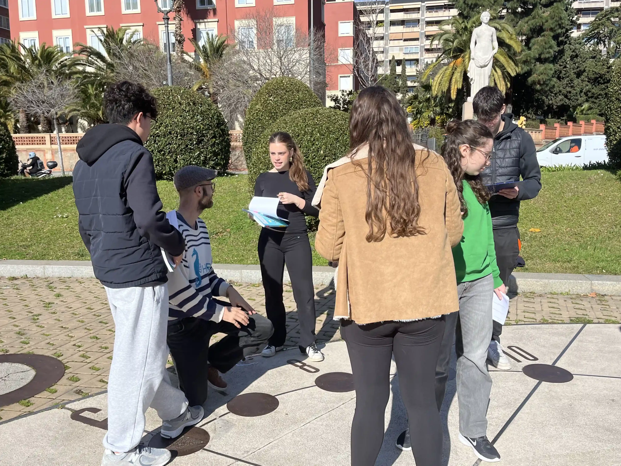 Par exemple, en enseignement scientifique de première, on y aborde la place de la Terre dans l’univers, et dans ce cadre, les 1ère 2, emmenés par M. Cordier, sont sortis de la salle de cours pour aller s’interroger sur le fonctionnement d’une horloge solaire.