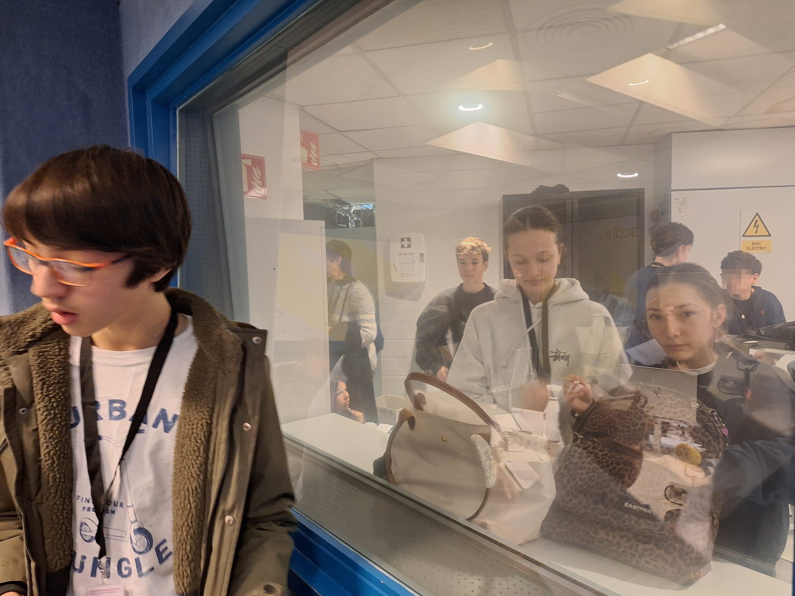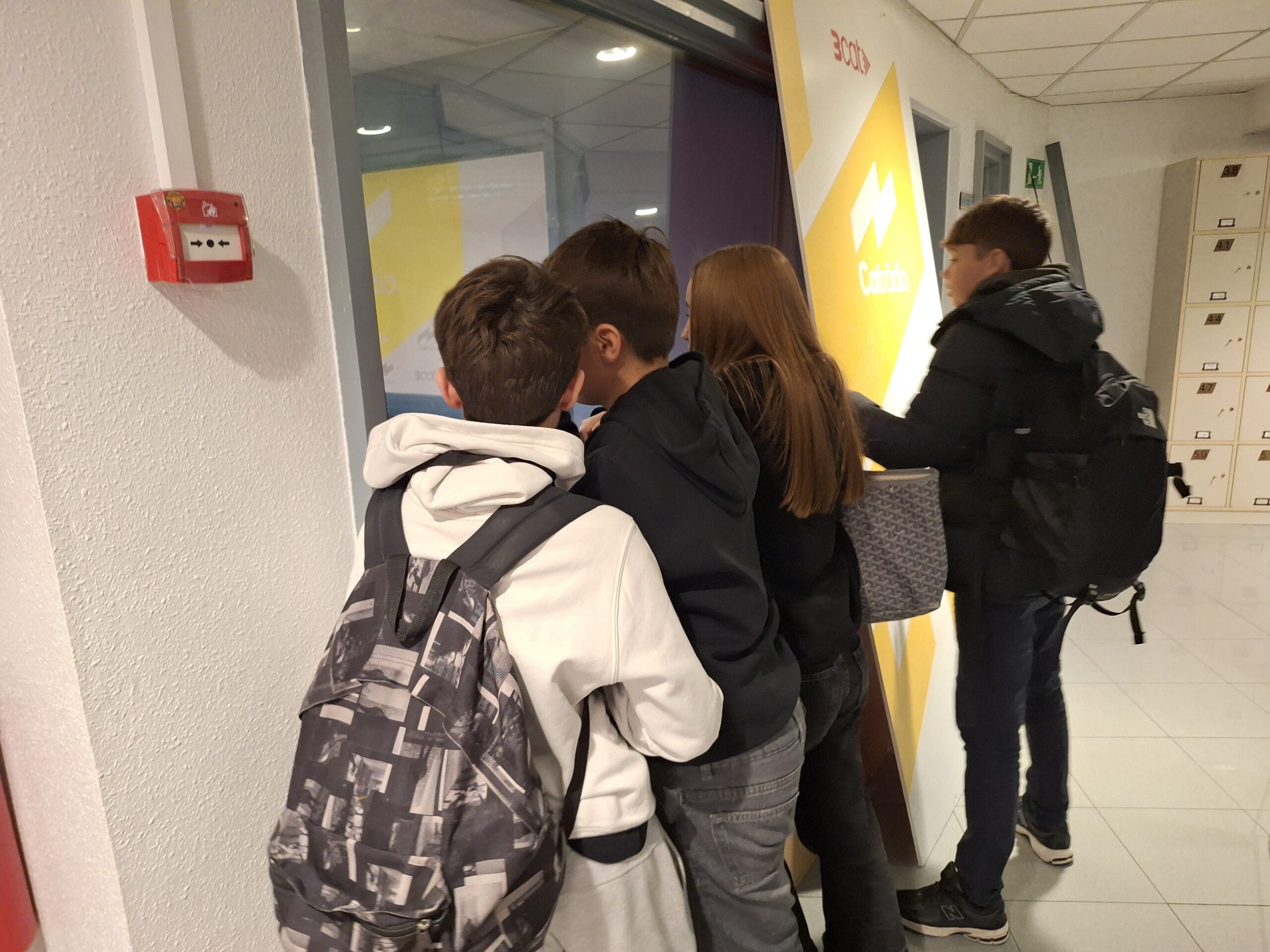 Quan vàrem arribar a la seu de les quatre emissores de la “Corpo”, Catalunya Ràdio, Catalunya Informació, Catalunya Música i iCat, la guia educativa ens va anunciar que no podríem assistir a cap programa en directe perquè els horaris de gravació dels d’iCat no coincidien amb els de la nostra visita i perquè, pel que sembla, al Matí de Catalunya Ràdio hi va haver un problema amb el públic i ja no s’autoritza que n’hi hagi.