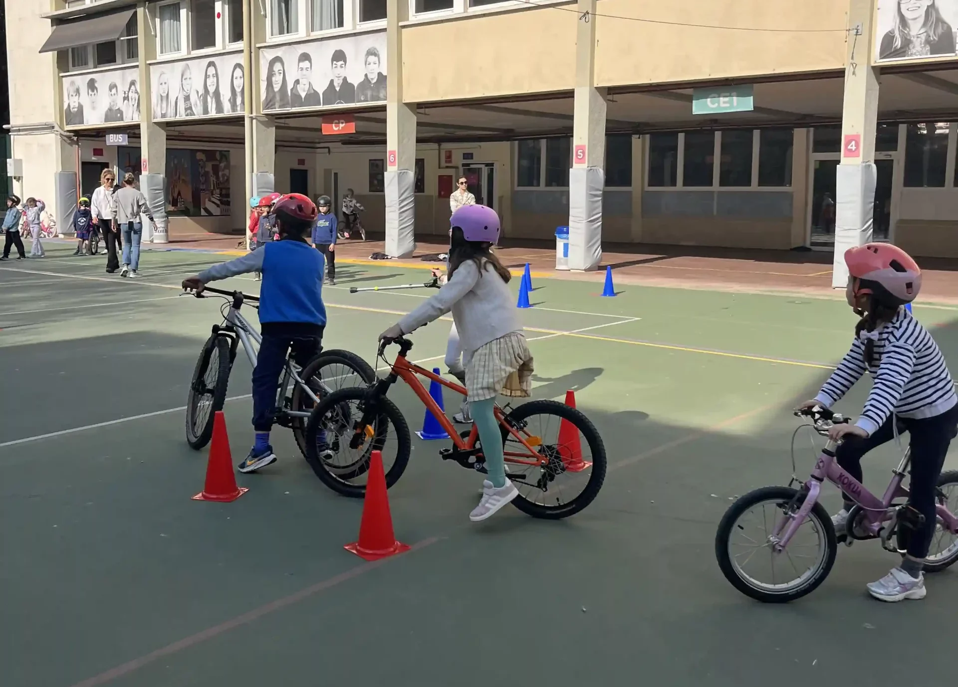 Aidés de leurs professeurs, ils ont appris à manipuler leurs vélos sur différents parcours.