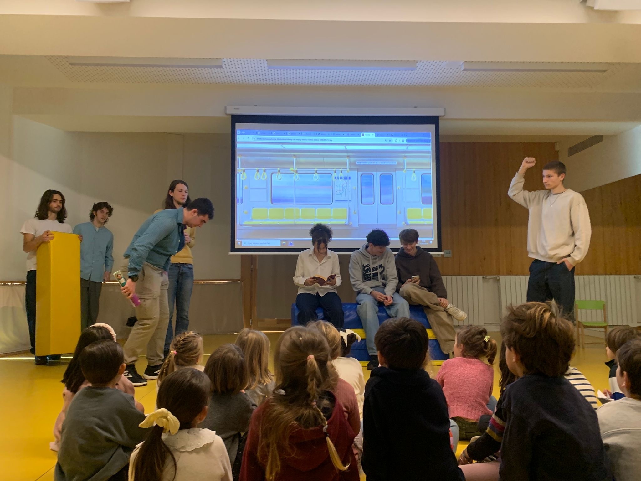 Les classes de Terminale 5 et 8, accompagnées de leur professeure d’espagnol Montse Ramos, sont venues présenter des scènes théâtralisées aux élèves de MS2-3 d’Aurélie Saadi / Vincent Maida et de GS3-1 de Claire Ducruet / Nelly Bouleau.