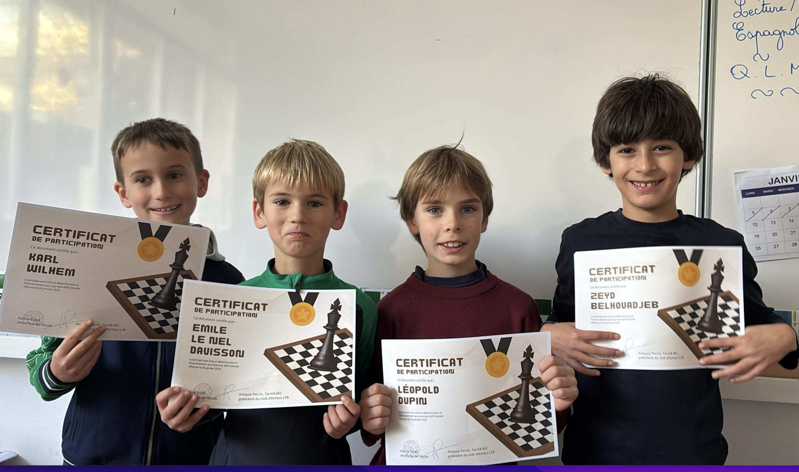 Ces tournois permettront à nos élèves de se mesurer à d’autres jeunes joueurs du réseau AEFE du monde entier, lors de parties en ligne sur la plateforme Lichess. Les matchs se dérouleront depuis la maison, offrant ainsi une belle opportunité de représenter notre établissement dans un événement international.
